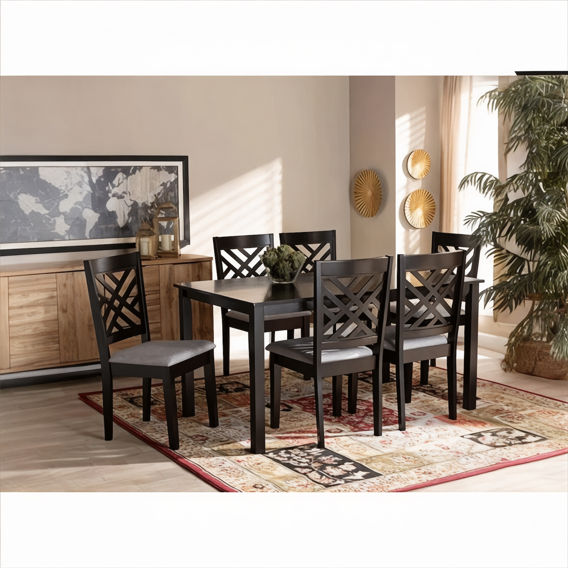 Brown Dining Room Beech Wood with 7 pieces